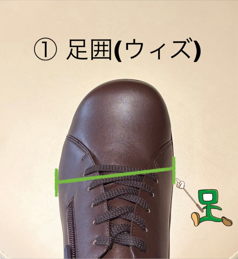 足長(cm)だけでなく、足囲(ウィズ)・足幅・つま先の形状を確認し、
