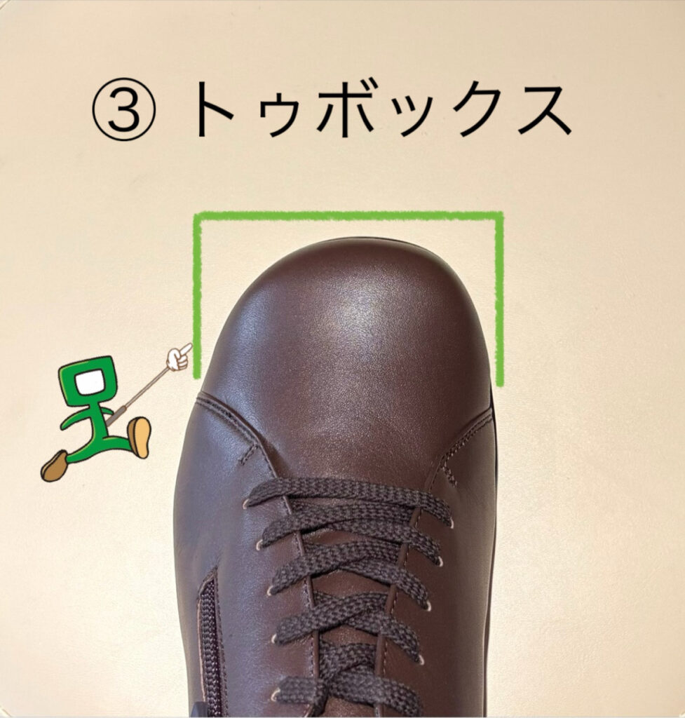 ③ トゥボックス(つま先の形状)